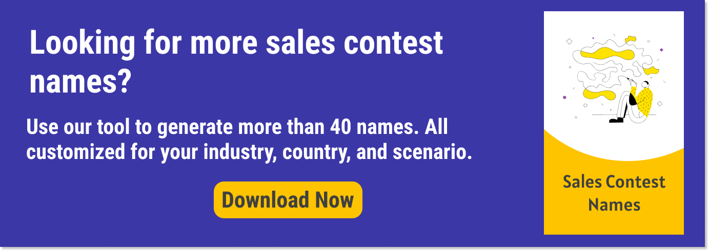 25. Pipeline Pushers - Sometimes, salespeople get too focused on one part of the pipeline like closing, that they neglect others like prospecting. To have some fun, you can come up with names like this one for your team and also conduct a contest around this.